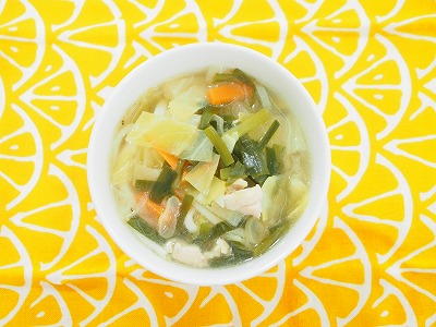 チンゲン菜のスープ(チンゲン菜、人参、玉ねぎ、コーン)