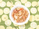 さばのトマトペンネ(さば、玉ねぎ、万能ねぎ、トマト)