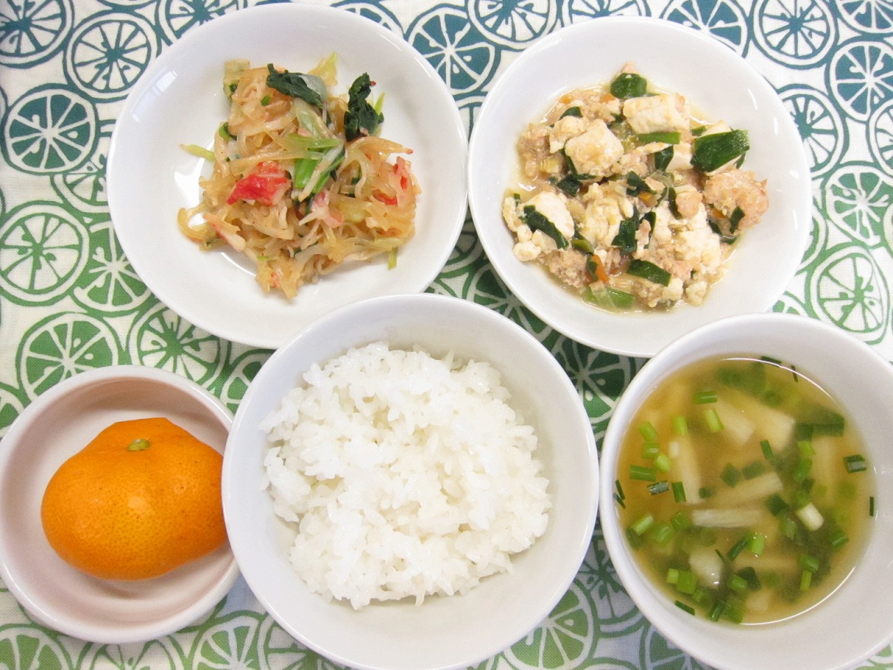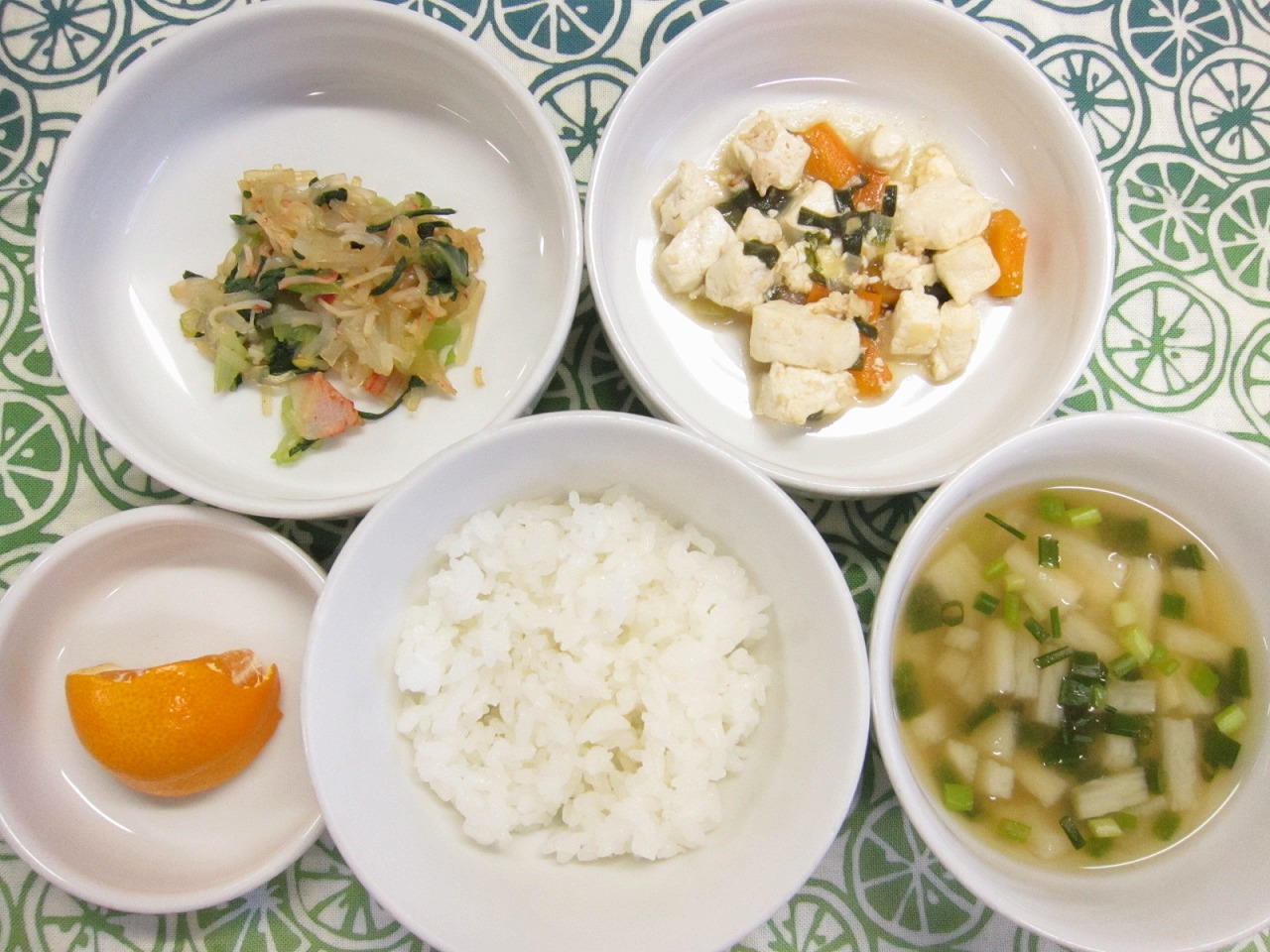 厚あげのそぼろあん(厚揚げ、鶏肉、人参、長ネギ)
