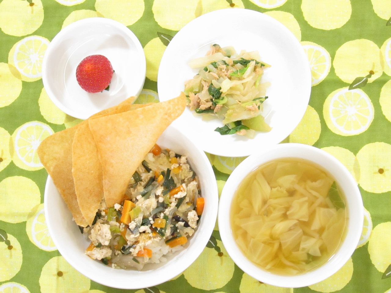 春巻き丼(鶏肉・人参・長ねぎ・にら・干ししいたけ)