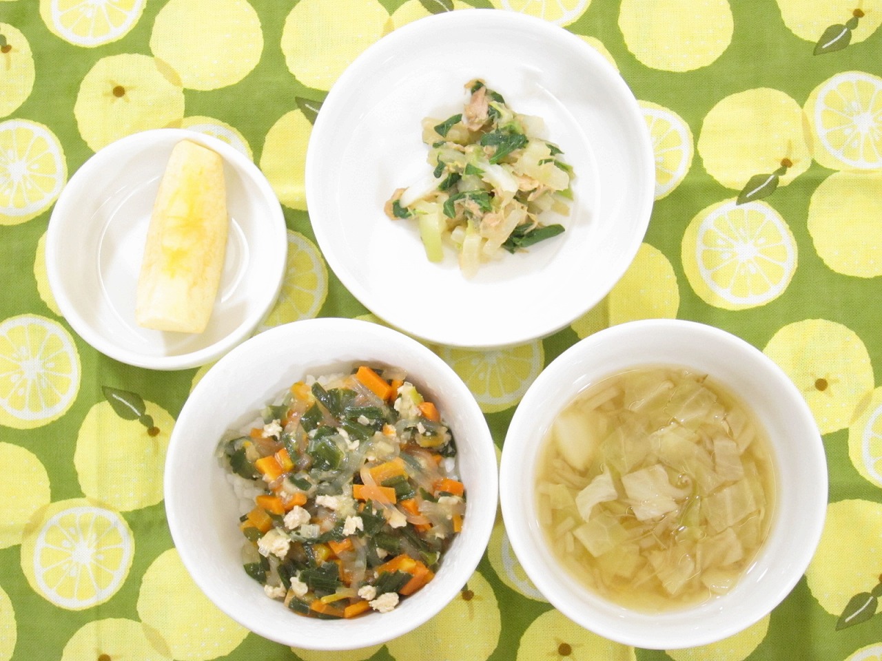 納豆ごはん(納豆・きゃべつ・人参・長ねぎ)